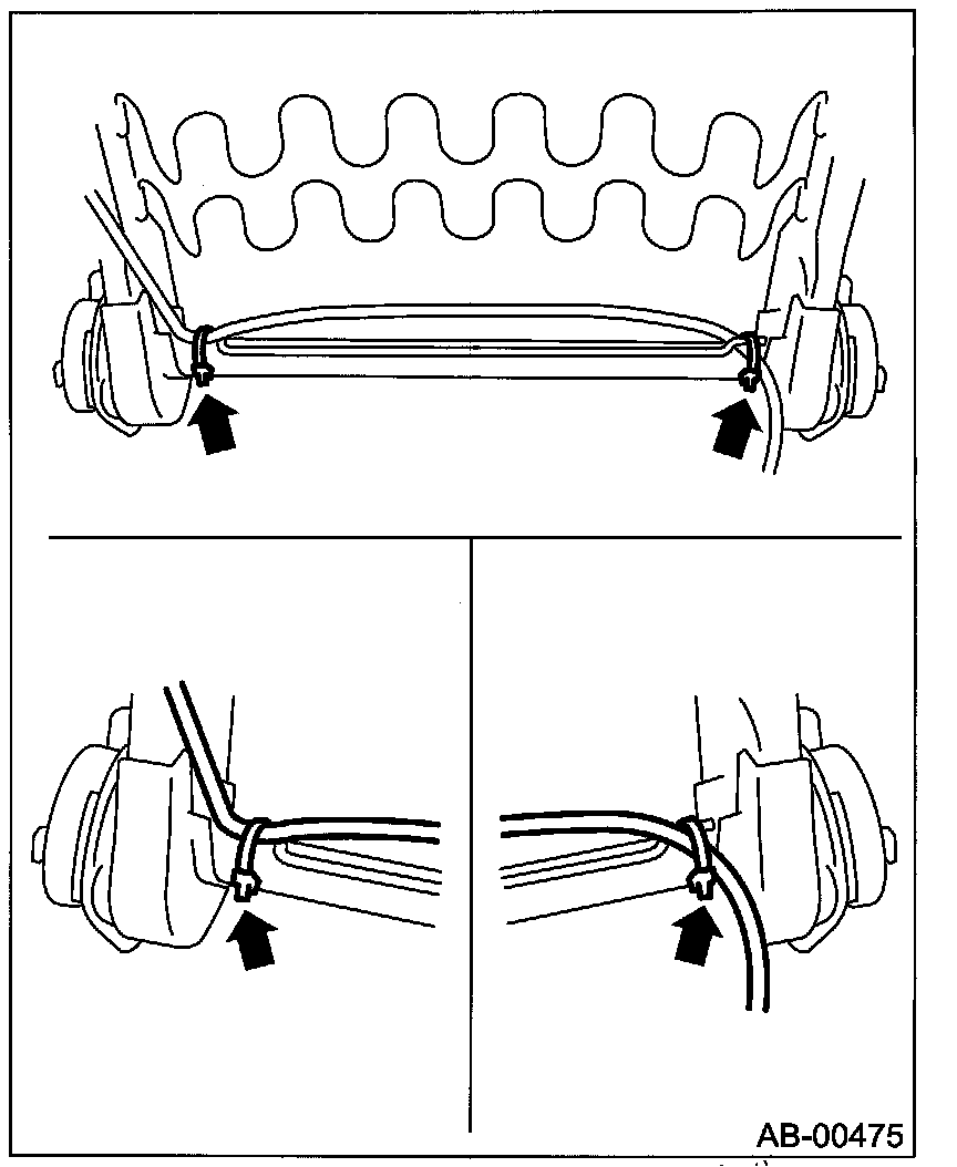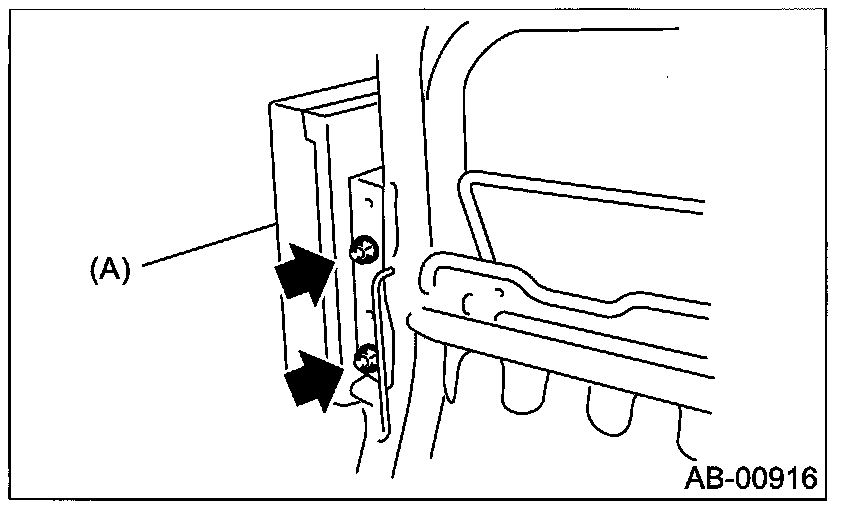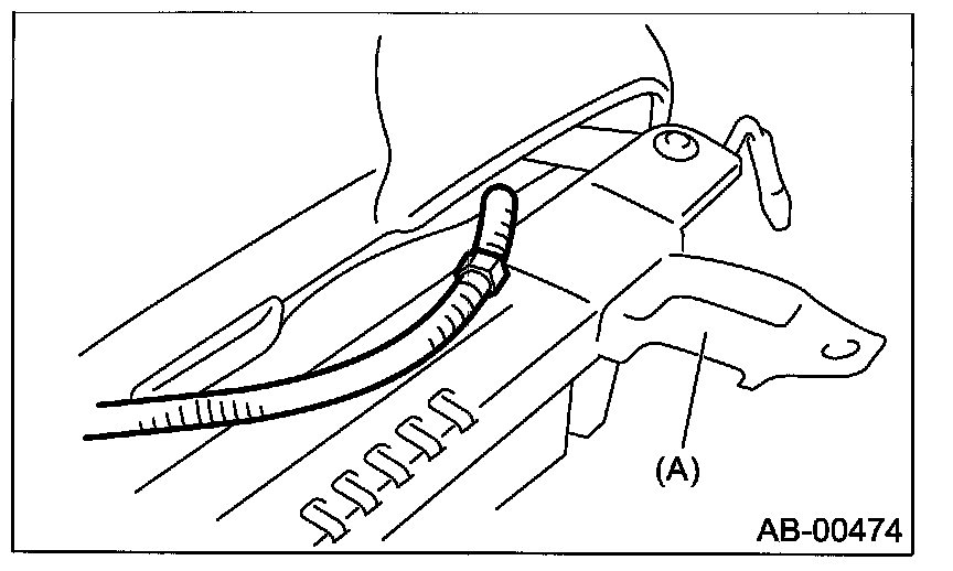 Install the side airbag harness to slide rail IN (A), and then secure the connector to the bracket the back side of seat cushion assembly.