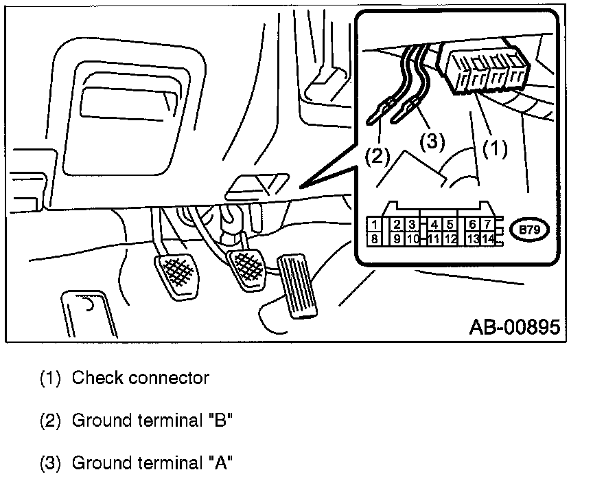 While the warning light flashes, connect another diagnosis terminal (ground terminal "B") to the check connector terminal No. 3.