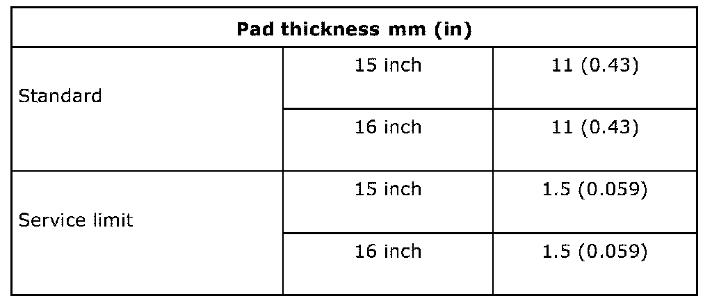 Rear pad specifications