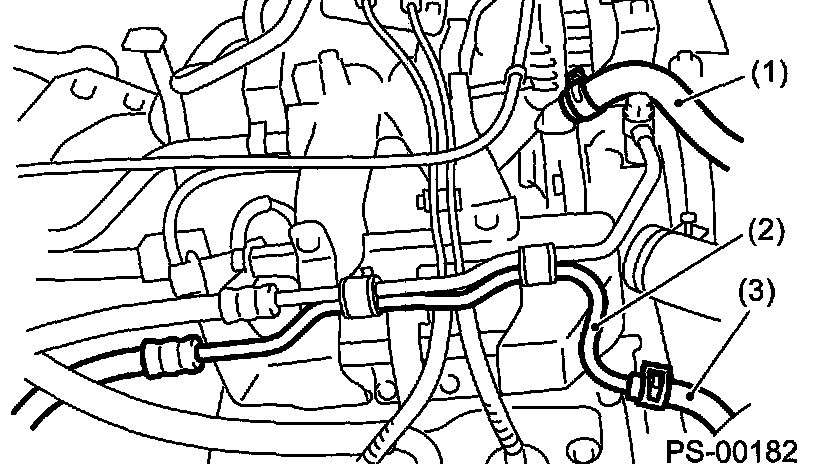 Remove the pipe joint in center of gear box, and then install the vinyl hose to pipe and joint. Drain the fluid while turning steering wheel.