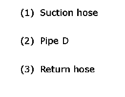 Disconnect the pipe D from return hose and suction hose from oil pump.