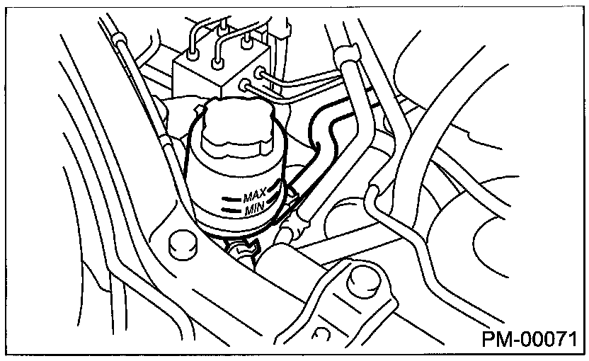 NOTE: If the fluid level is at MAX level or above, drain fluid to keep the level in specified range of indicator by using a syringe or the like.