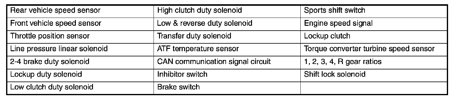 The on-board diagnostics system detects and stores in the form of a code a fault that has occurred in any of the following input and output signal systems.