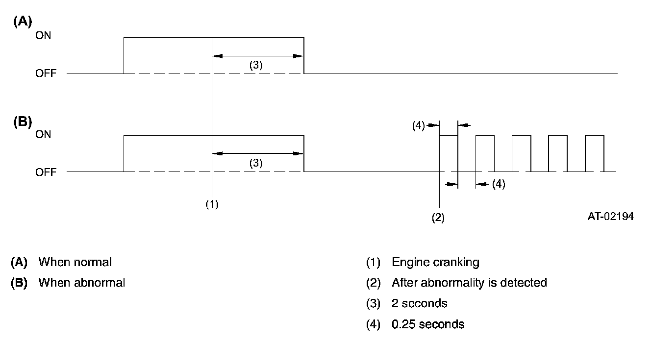 OPERATION OF SPORT INDICATOR LIGHTOn starting the engine, the SPORT indicator light illuminates and then goes out as shown in the Normal diagram. If any problem exists, the light continues flashing as shown in the Abnormal diagram.