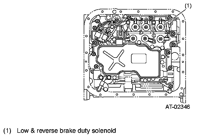 LOW & REVERSE BRAKE DUTY SOLENOIDThis solenoid is mounted on the transmission control valve. This adjusts the pressure applied to the low & reverse brake in response to the duty instructions from the TCM. The engaging force of the low &reverse brake during shifting is properly controlled and shift shocks are reduced.