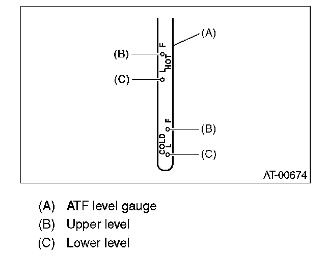 ^ Filling of ATF to the upper level when the transmission is cold will result in overfilling of ATF, causing a transmission failure.