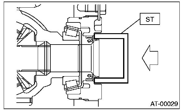 7. Using ST, install the differential side retainer oil seal by slightly tapping with hammer.