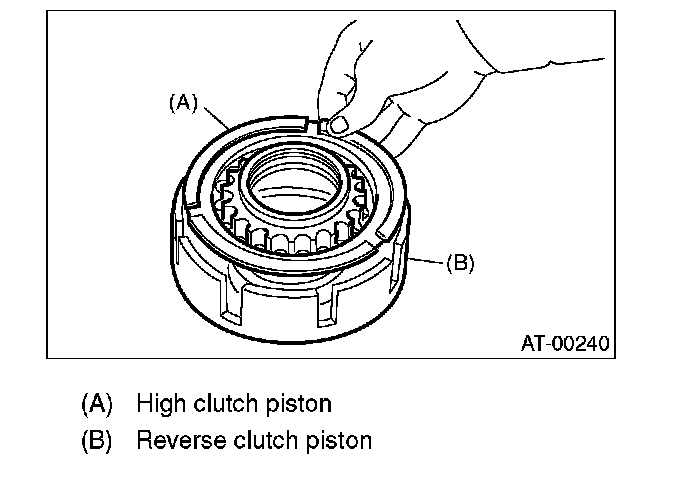 2. Install high clutch piston to reverse clutch piston.