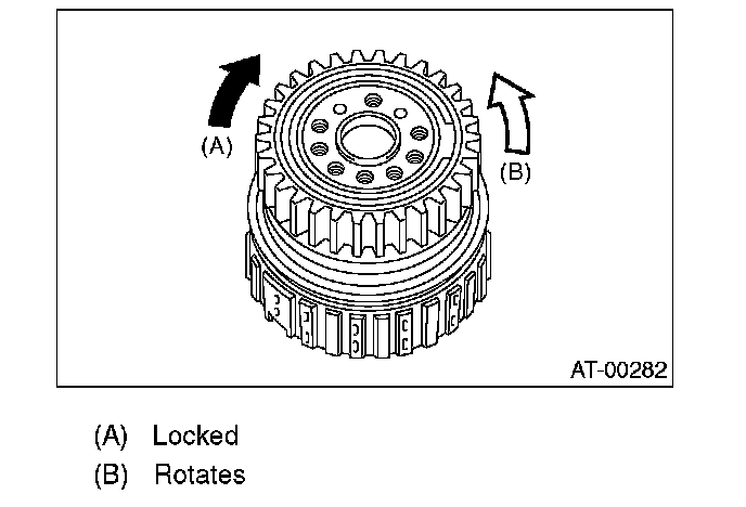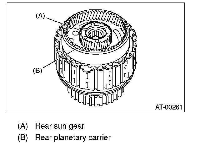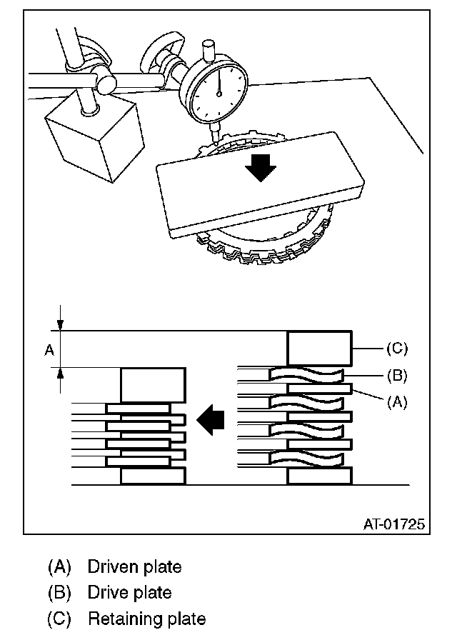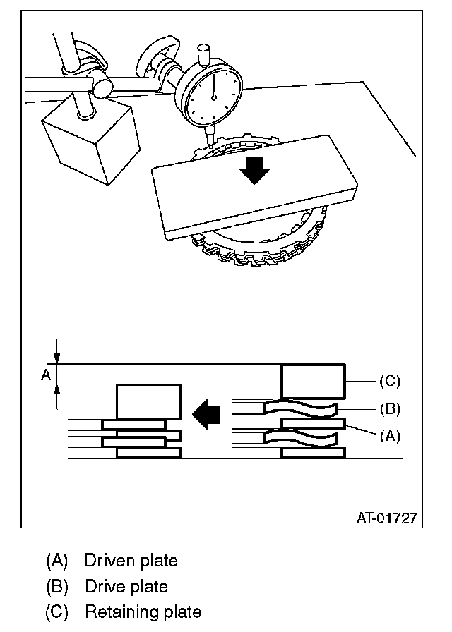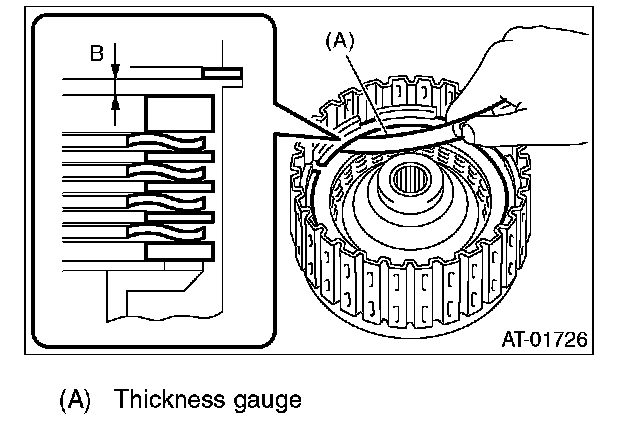 (1) Measure and record the clearance "B" between the retaining plate and snap ring. (High clutch)