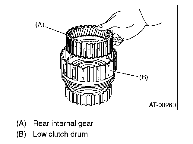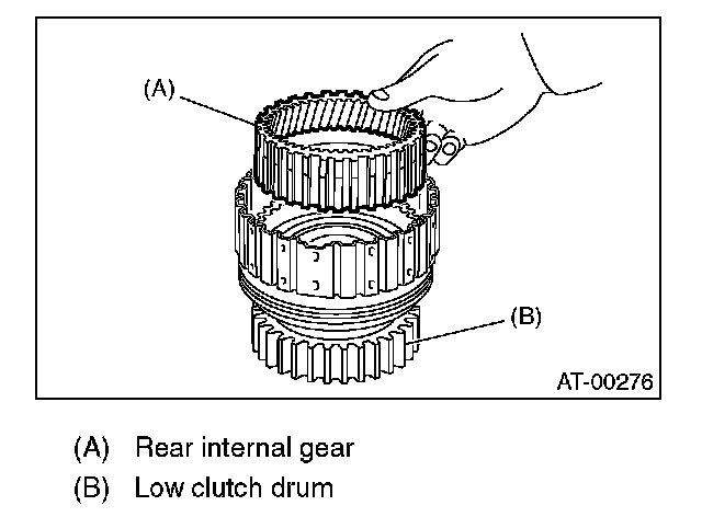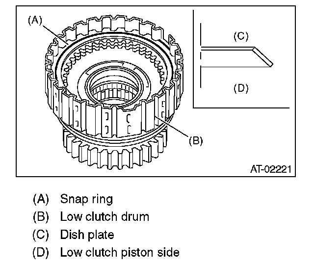 (2) Inspect clearance between retaining plate and operation of the low clutch.
