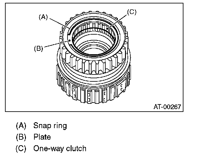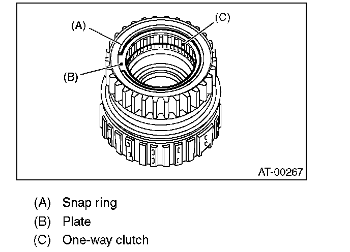 2. Install the one-way clutch, one-way clutch inner race and plate, and secure with the snap ring.