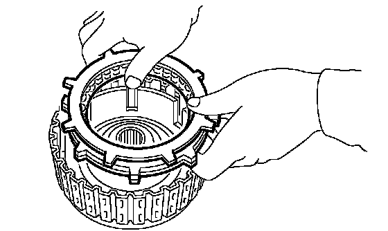 3. Install reverse clutch to high clutch drum. Align the groove on the reverse clutch piston with the groove on the high clutch drum during installation.