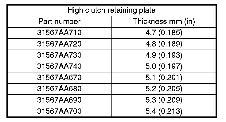 11. Selection of high clutch retaining plate (Non-turbo model)