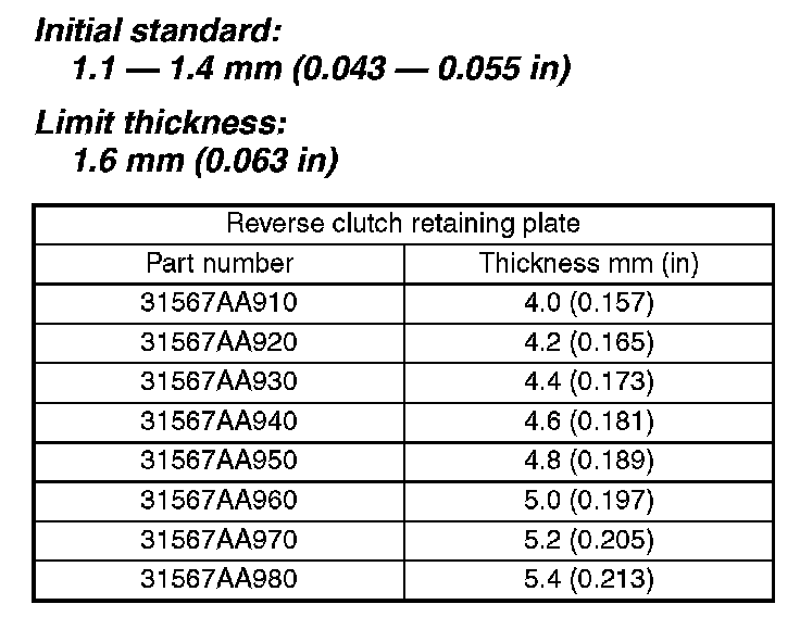 14. Selection of reverse clutch retaining plate