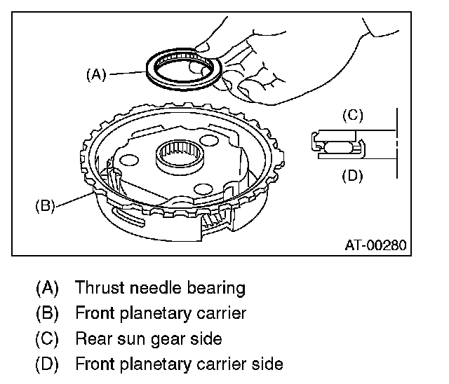 4. Take out rear planetary carrier, washer and thrust needle bearing.
