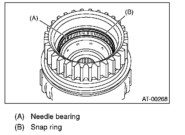 1. Install the needle bearing, and secure with the snap ring.