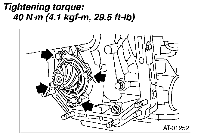 2. Install the oil pump housing assembly to the converter case, and secure evenly by tightening four bolts.