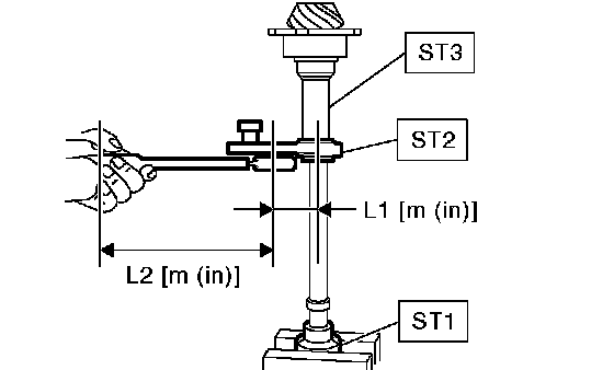 3. Rotate the drive pinion several times with ST1 and ST2.