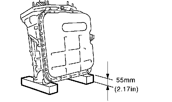14. Place two wooden blocks on the workbench, and stand the transmission case with its rear end facing down.