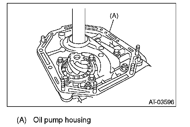 5. After correctly installing the new gasket to the case mating surface, carefully install the oil pump housing assembly. Be careful to avoid hitting the drive pinion against the inside of the case.