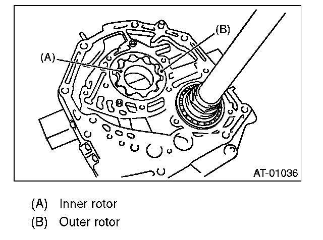(2) Side clearance Set a depth gauge to oil pump housing, then measure oil pump housing-to-rotor clearances.