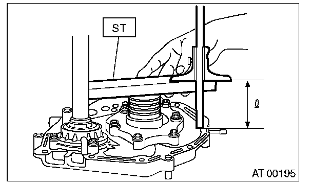 2. Using the ST, measure the distance from the oil pump housing mating surface to the end surface of ST.
