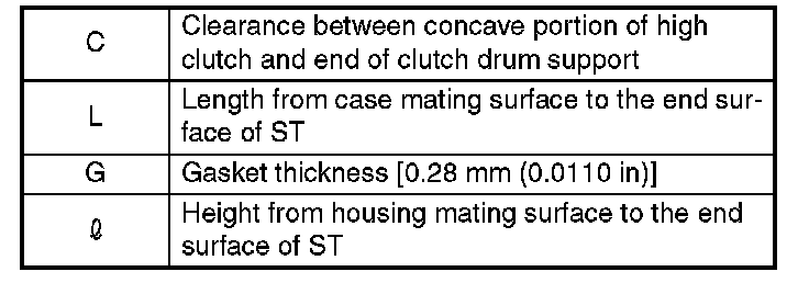 1. Using the ST, measure the distance from the end surface of ST to the recessed portion "L" of the high clutch drum.