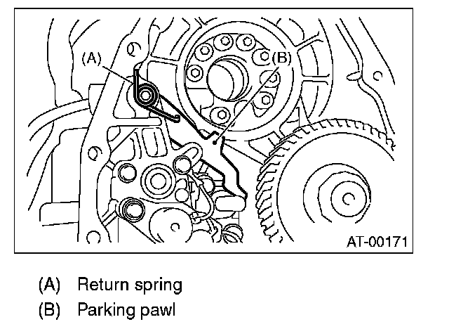 1. Install the parking pawl, shaft and return spring.