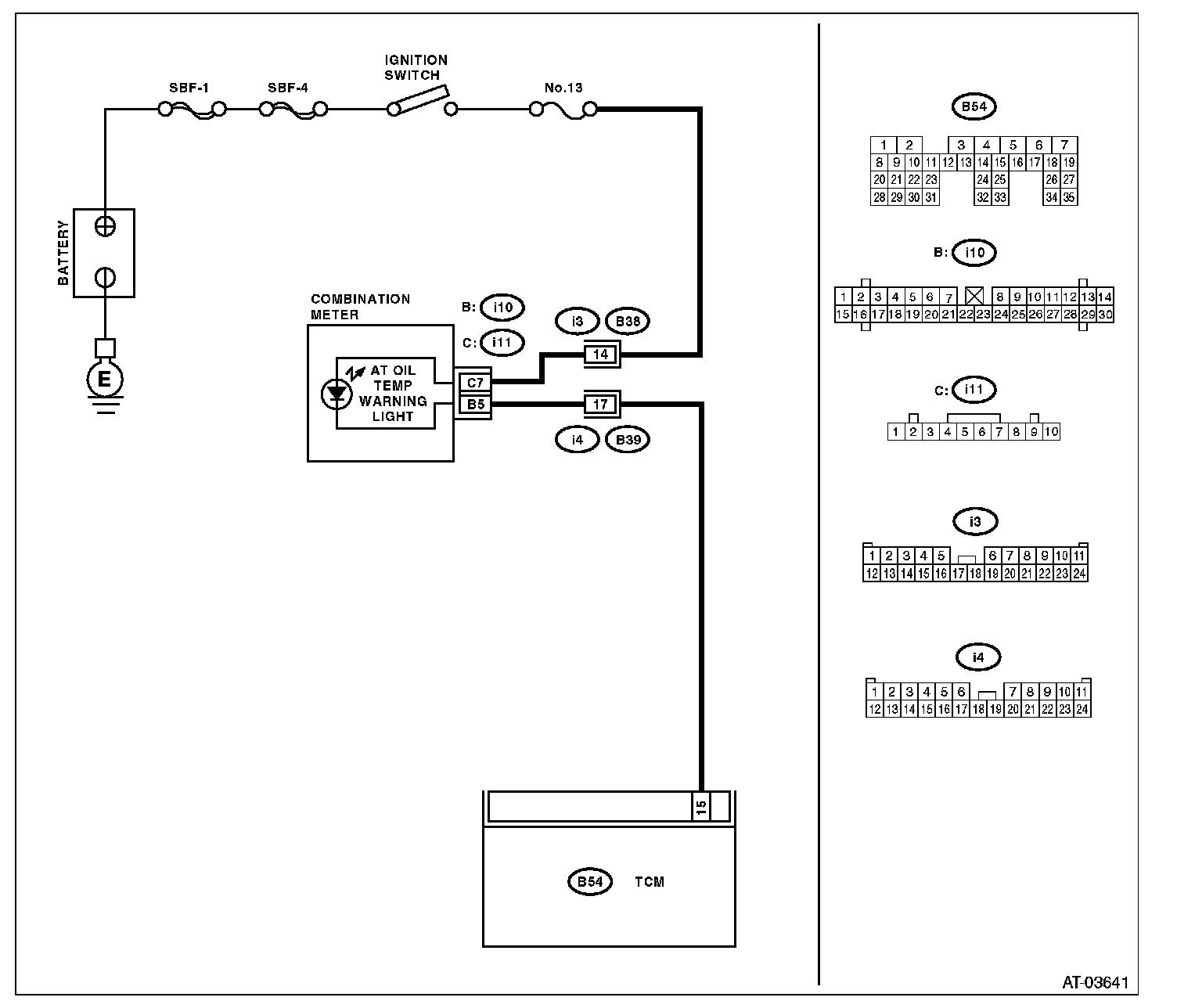 The AT OIL TEMP warning light circuit is open or shorted.