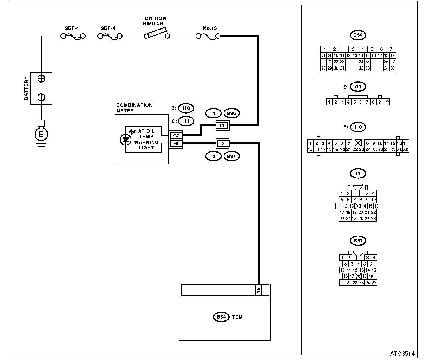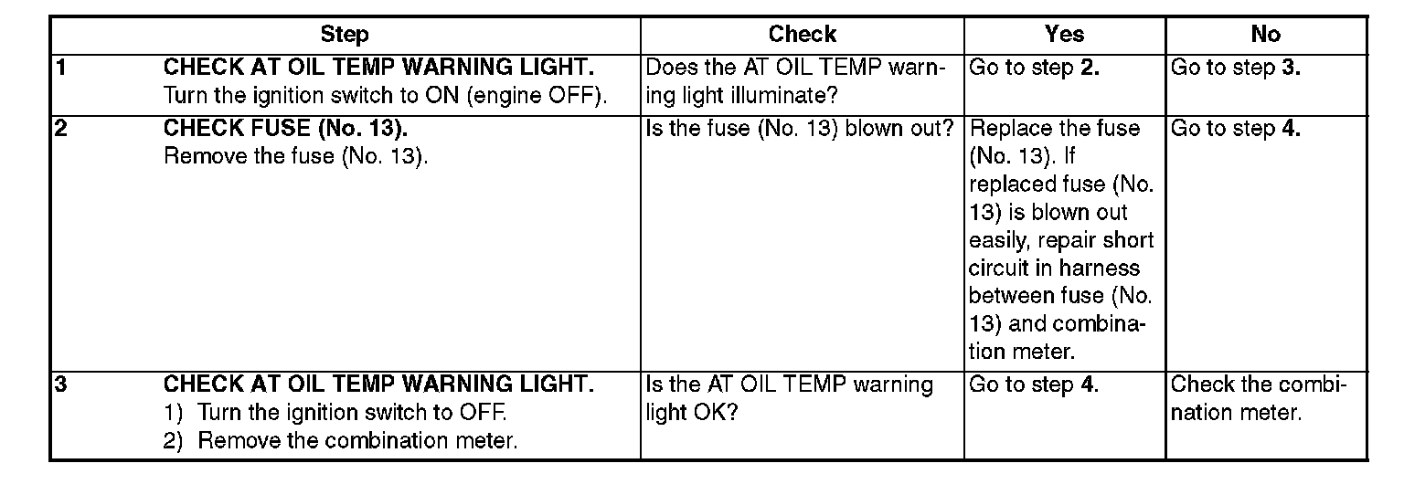 ^ When the ignition switch is turned to ON (engine OFF), AT OIL TEMP warning light does not illuminate.
