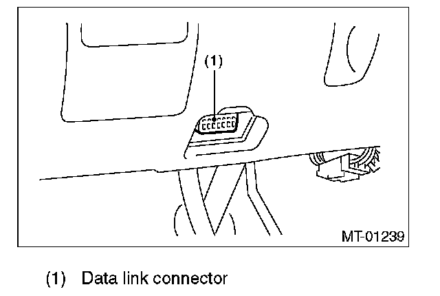 (1) Data link connector is located in the lower portion of the instrument panel (on the driver's side).