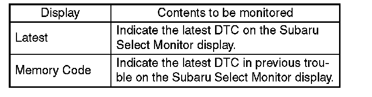 ^ For details concerning operation procedure, refer to the "SUBARU SELECT MONITOR OPERATION".