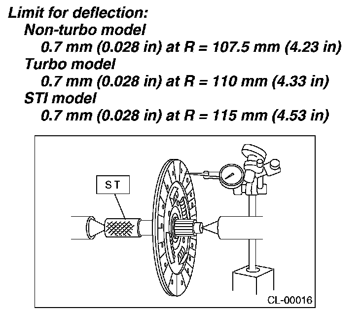 If deflection exceeds the specified value at the outer circumference of facing, repair or replace.