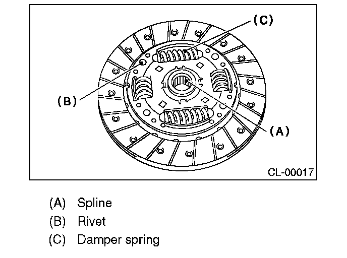 5. If worn spline, loose rivets or damper spring failure is found, replace the clutch disc.