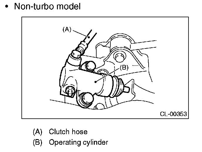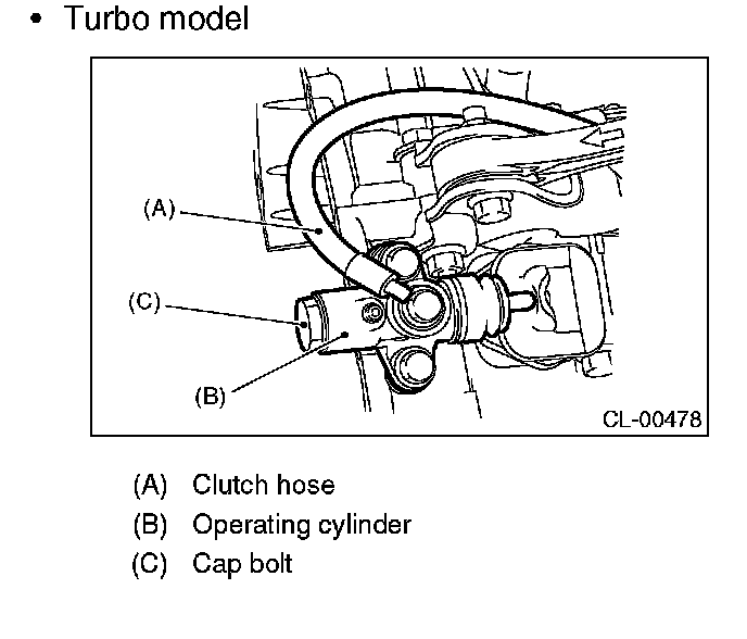 ^ For turbo model, bleed air with the operating cylinder attached to clutch hose, and then install it to vehicle.
