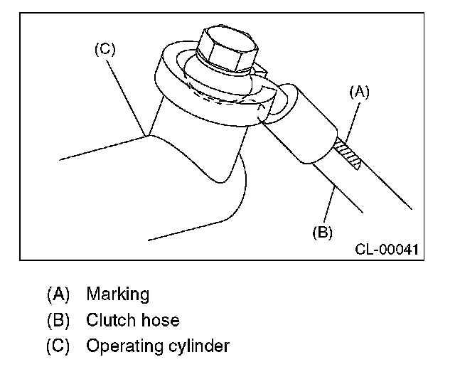 ^ Be sure to install the clutch hose with the mark side facing upward.
