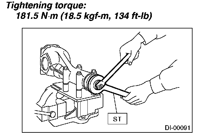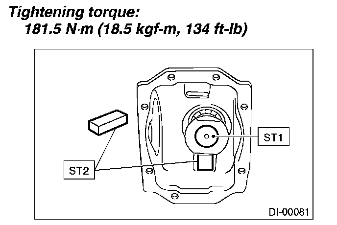 (2) Install the front bearing race to differential carrier using ST1 and ST2.