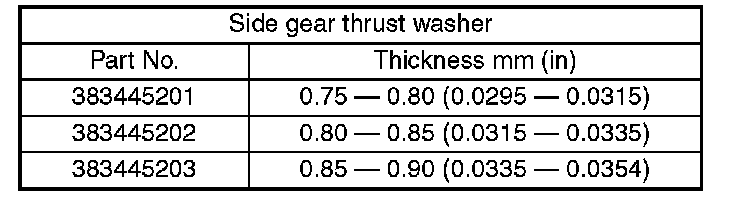 (2) Adjust the backlash as specified by selecting the side gear thrust washer.