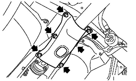 20. While slowly lowering the transmission jack, move the rear differential forward and remove differential front member and rear differential from vehicle.