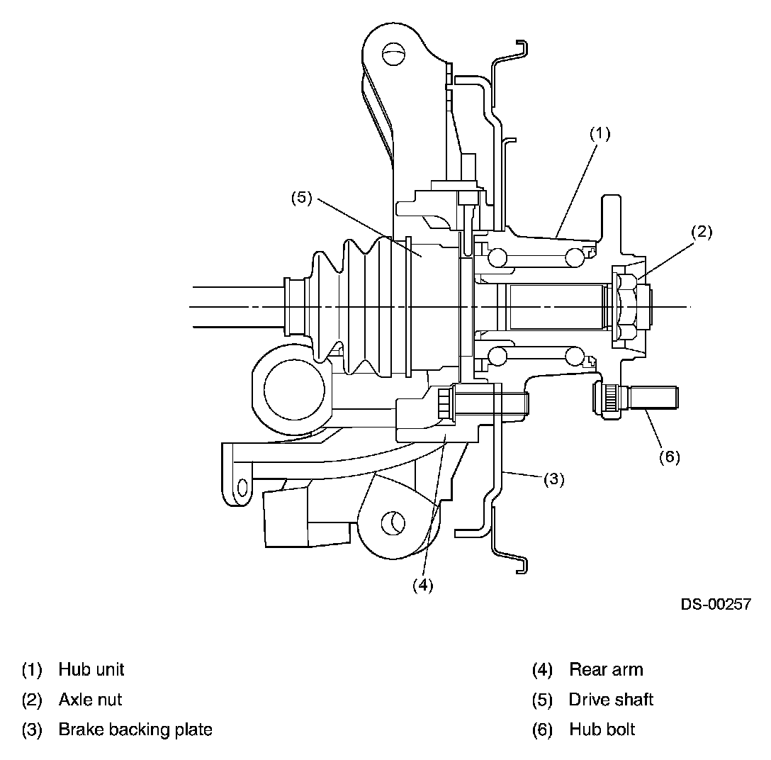 ^ The hub unit, rear arm and the brake backing plate, which is sandwiched between them are held together with four bolts.