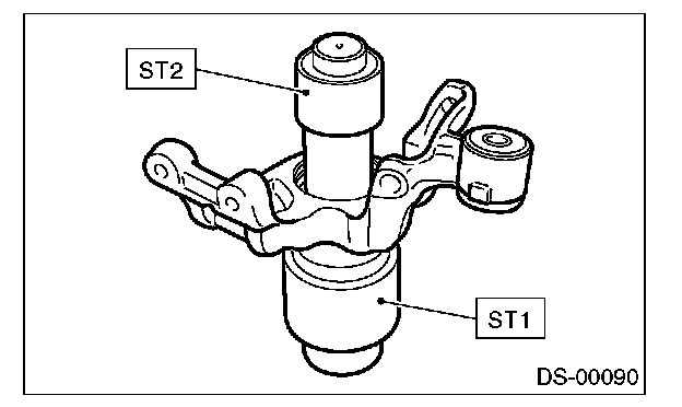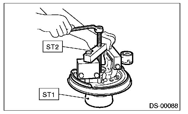 5. Using the ST1 and ST2, remove the bearing by pressing the inner race.