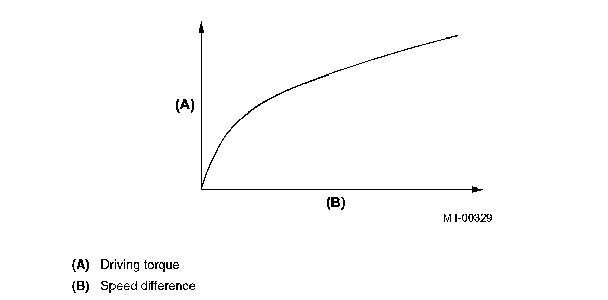 The hump eliminates the rotating speed difference between the center differential case and the rear side gear (or locks the differential), so soon after it has occurred, the internal pressure and temperature drop. The viscous coupling then returns to the normal shear torque transmitting operation. (The hump phenomenon does not occur under normal operating conditions.)
