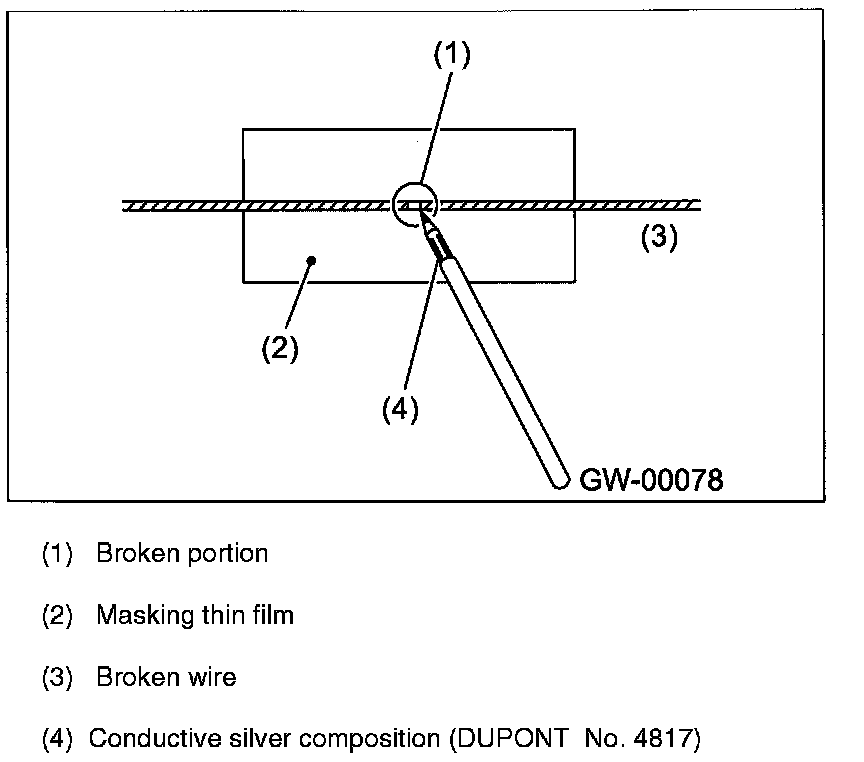 Apply conductive silver composition (DUPONT No. 4817) to broken portion.