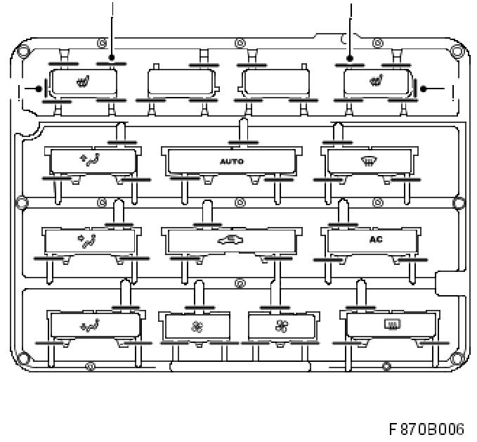 - On buttons with symbols for electrically heated seats there must be no pins protruding from the sides of the buttons. The pins at the rear are to be kept.