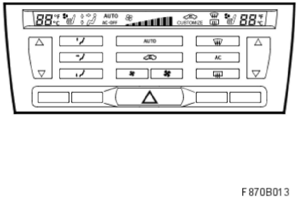 NOTE: There are two different sets of buttons, one with and one without symbols for the electrically heated seats.