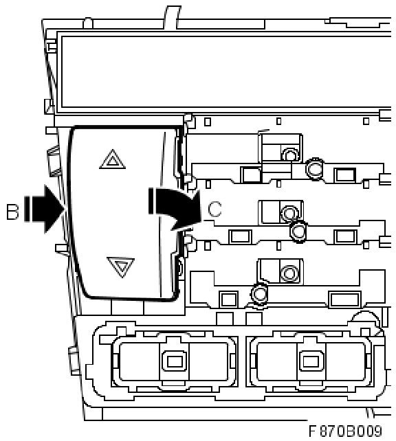 - Dummy buttons and buttons for the electrically heated seats (C) must be pressed downwards. The button for the hazard flashers (D) should be pulled straight out.