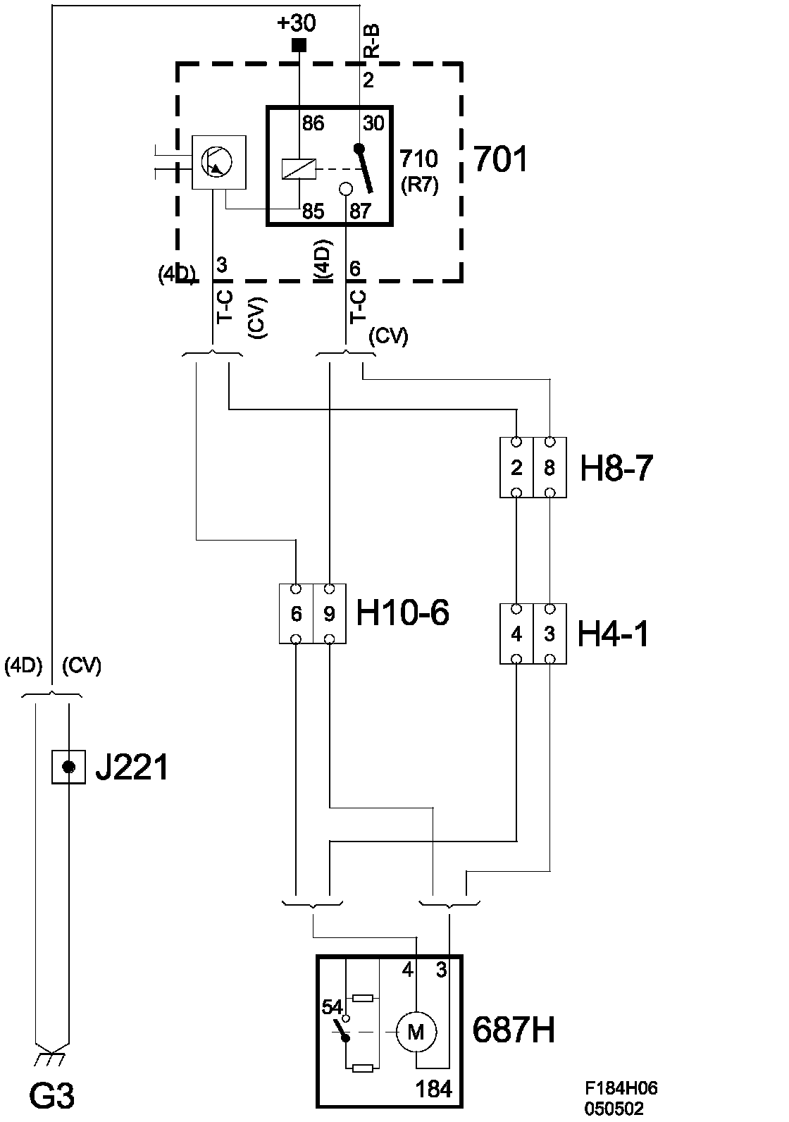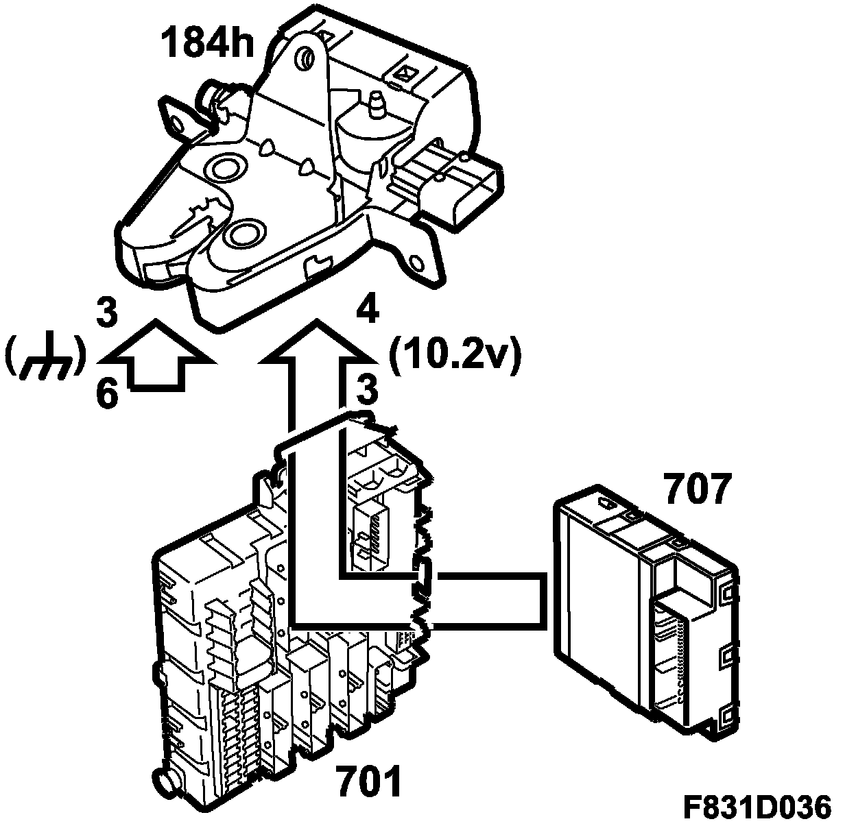 The motor is connected with 2 cables to the rear electrical centre. The rear electrical centre unlocks by sending battery voltage on the cables. In the idle position the circuit is dead. The wiring harness to the motor has 6 extra dummy cables in order to impede car theft. All cables are black.