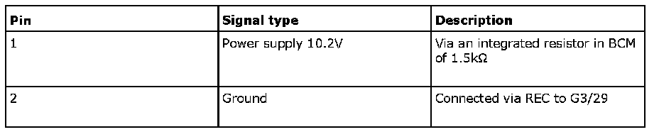 ^ Use of a switch to indicate whether the boot lid is open or closed. The value is used for the antitheft alarm function, for luggage compartment lighting and to inform the driver that the boot lid is not closed. The body control module sends the status of the switch on the bus.