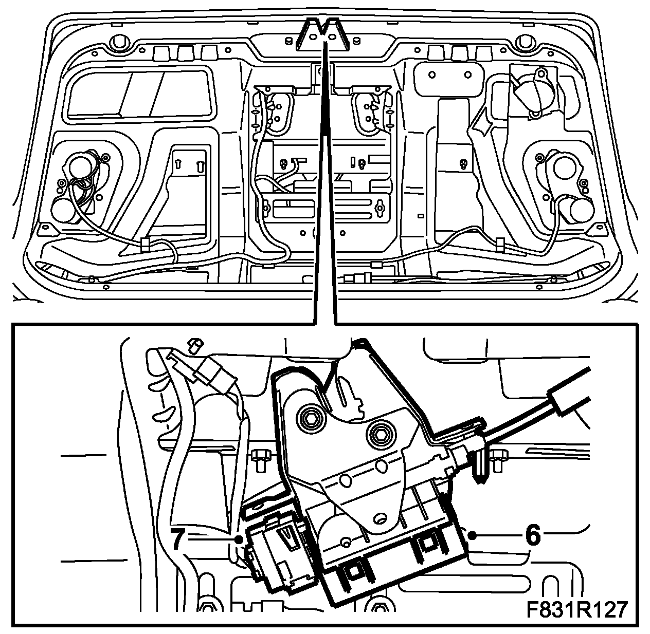 1. US/CA: Fit the cable for the emergency opening handle in the bracket.