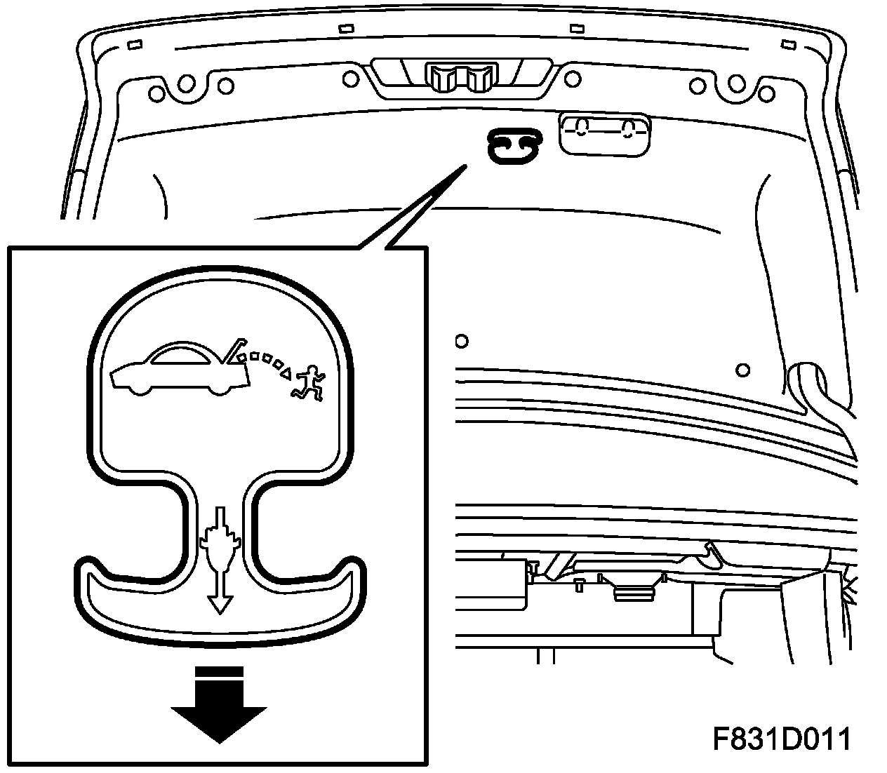 If anyone should be shut in the boot there is a handle in a fluorescent material on the inside of the bootlid. The handle should be pulled downwards towards the floor to release the bolt and the bootlid can then be opened from the inside.